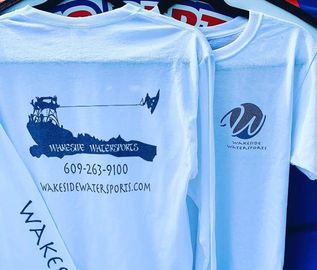 Available in both short or long Sleeve, featuring the Wakeside Watersports "WW" on the front, and the Wakeside Watersports Wakeboarding Boat Silhouette on the back.